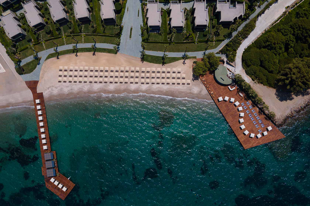We are in the most beautiful location of Bodrum with its seafront location in Turgutreis, where you can watch the most beautiful sunset of the Bodrum peninsula, at the intersection of the Aegean and the Mediterranean. Our hotel, 22 kilometers from Bodrum city center, has 70 rooms and suites, each of which is at least 40 square meters.