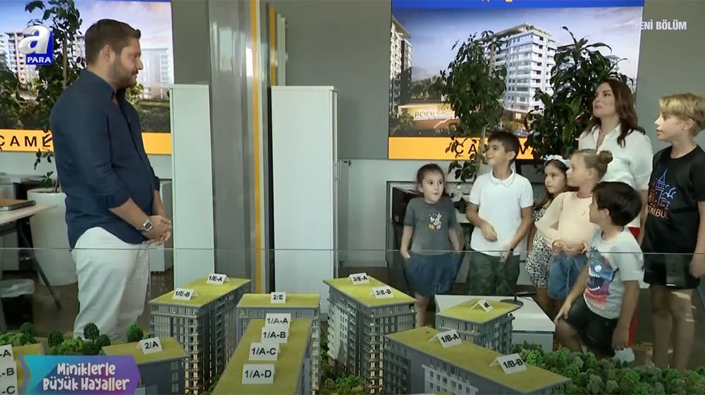 A Para’da yayınlanan Miniklerle Büyük Hayaller programı aracılığıyla minik arkadaşlarımız Avrupa Konutları Çamlıvadi şantiyesi ve yaşamın başladığı Vadistanbul projelerini ziyaret ettiler. İnşaat esnasında ve inşaat sonrasında konut projelerini gören çocuklar, satış ofisi maket başında da tüm merak ettiklerini Artaş Yönetim Kurulu Başkan Vekili Serhan Çetinsaya’ya sordular.