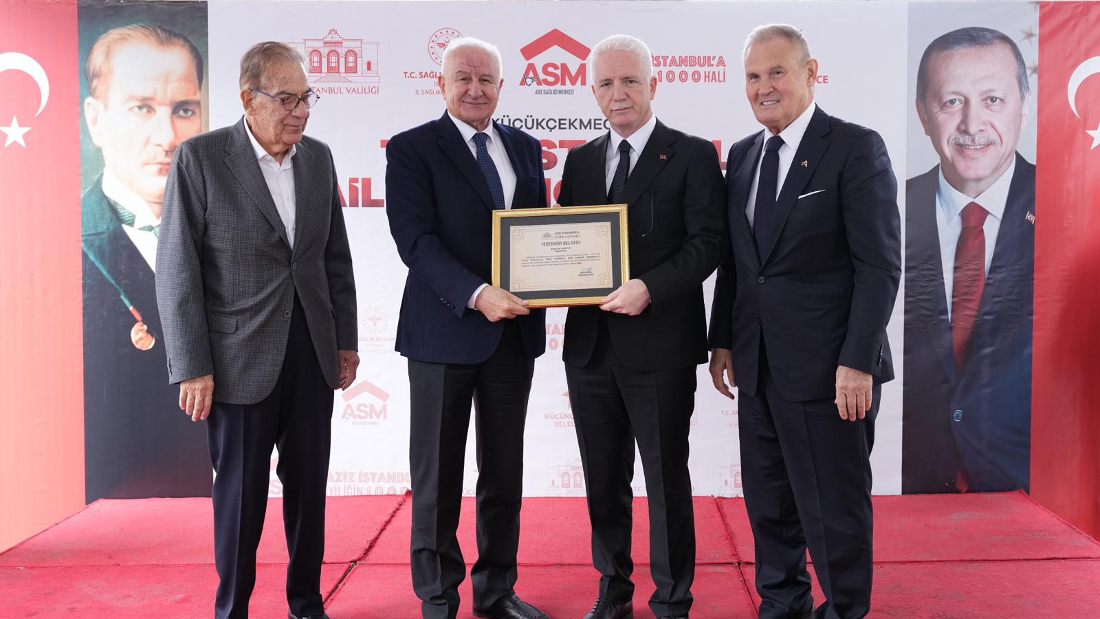 T.C. İstanbul Valiliği tarafından yürütülen “Aziz İstanbul’a İyiliğin 1000 Hâli” projesi kapsamında, Küçükçekmece Tema İstanbul Aile Sağlığı Merkezi Hizmete Alım Töreni; İstanbul Valisi Sayın Davut Gül, Yönetim Kurulu Başkanımız Sayın Süleyman Çetinsaya, Sayın Erhan Boysanoğlu ve Sayın Ali Kantur’un katılımıyla gerçekleştirildi.