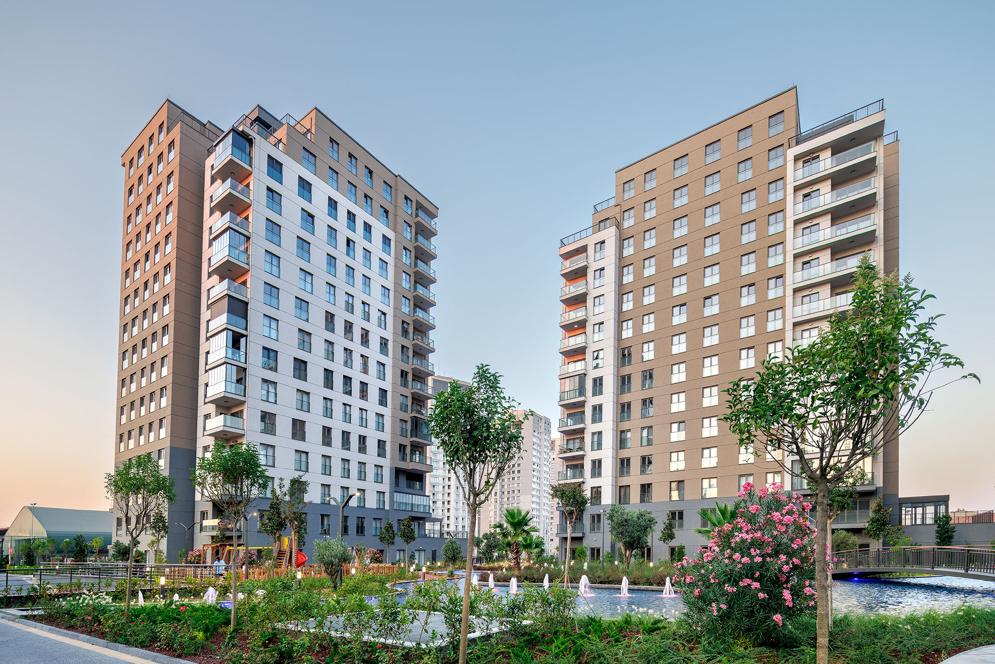 Avrupa Konutları Ata, which rises on 30 acres of land, consists of 413 flats in 5 blocks in total. Avrupa Konutları, with its flats opening to the garden, large and rich landscape area, reflection pools, social areas, stores and aesthetic architecture, makes a privileged life in Atakent, the shining star region of Istanbul.