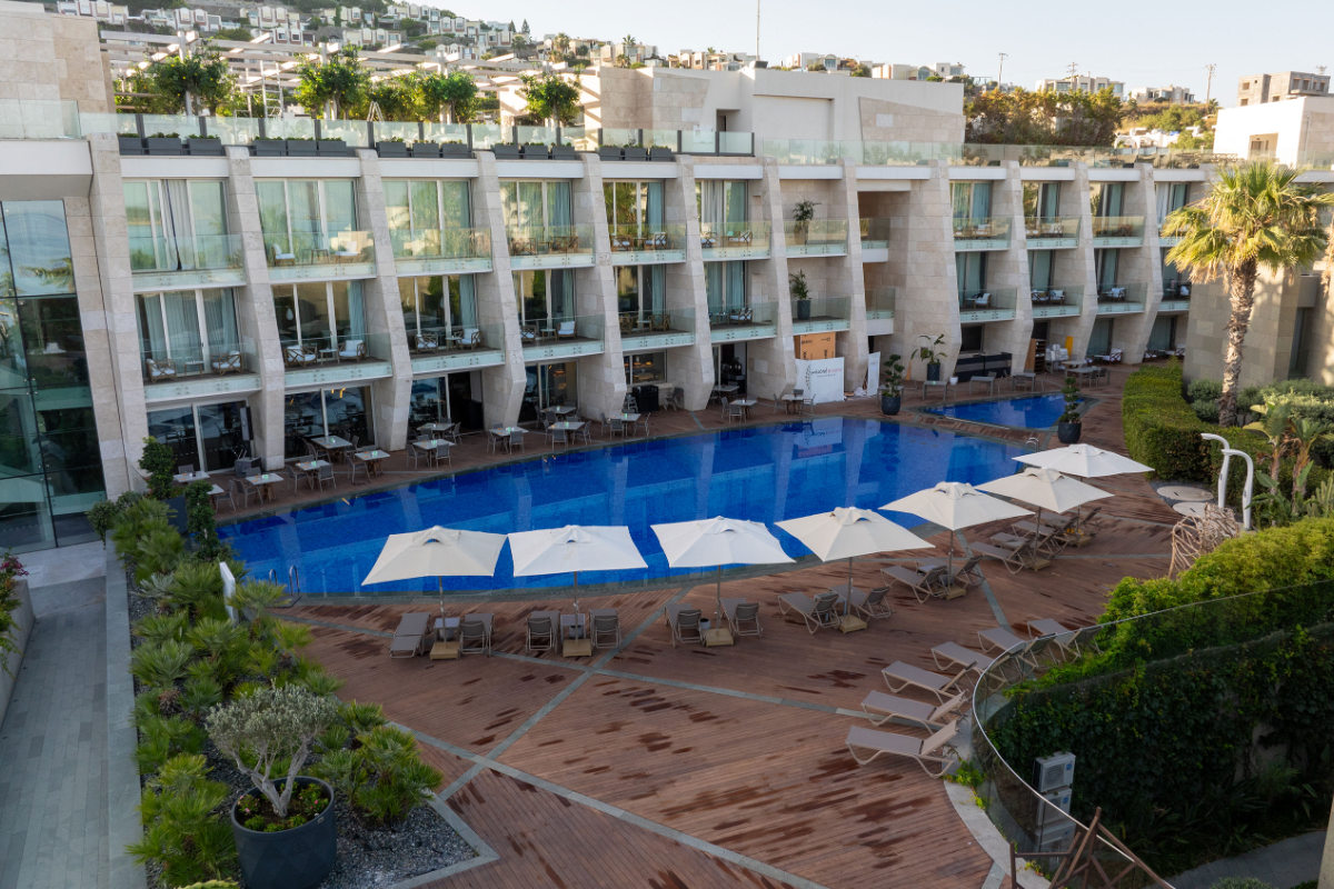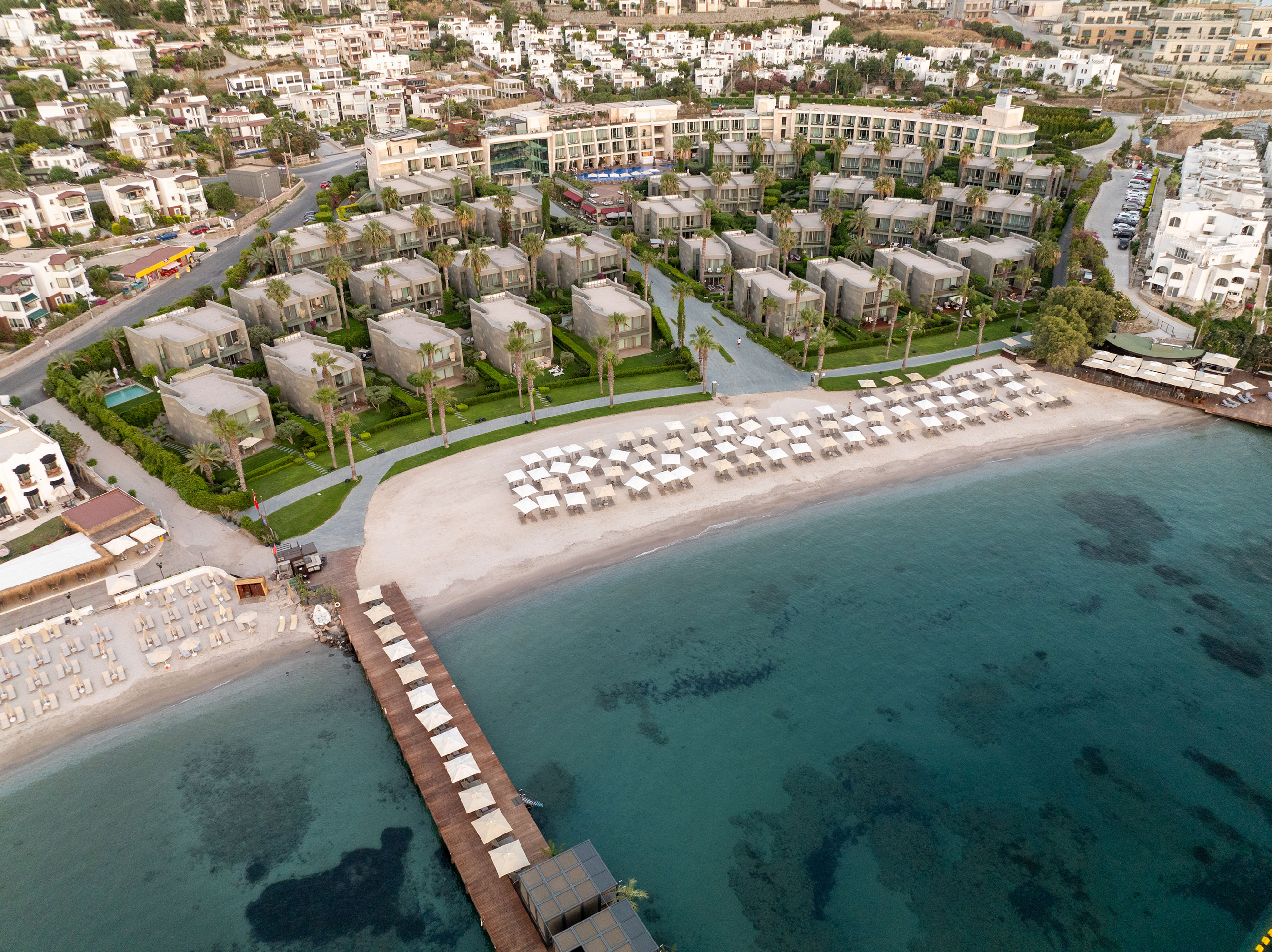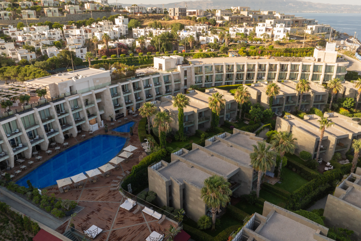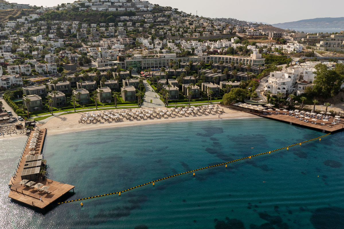 We are in the most beautiful location of Bodrum with its seafront location in Turgutreis, where you can watch the most beautiful sunset of the Bodrum peninsula, at the intersection of the Aegean and the Mediterranean. Our hotel, 22 kilometers from Bodrum city center, has 70 rooms and suites, each of which is at least 40 square meters.
