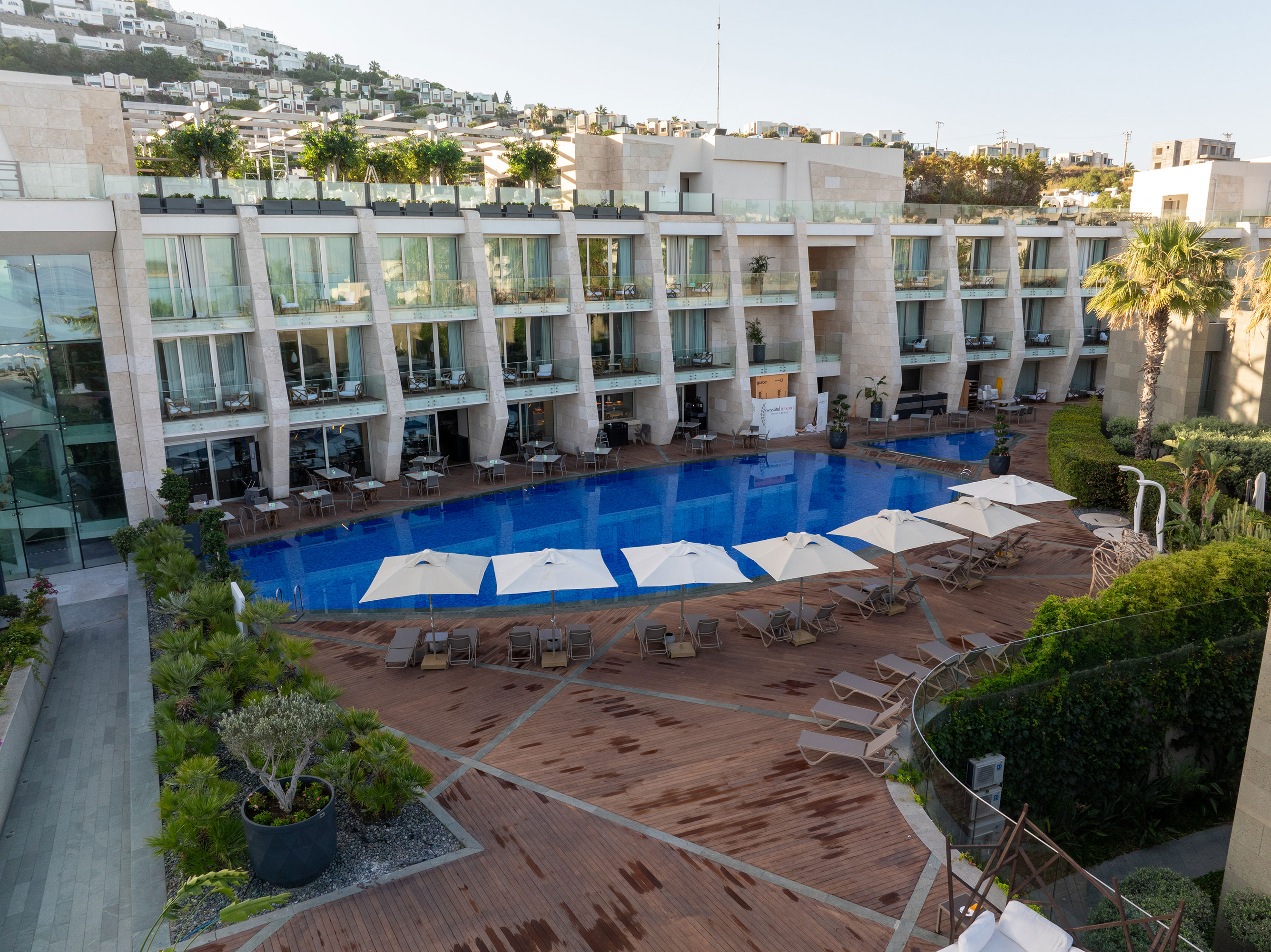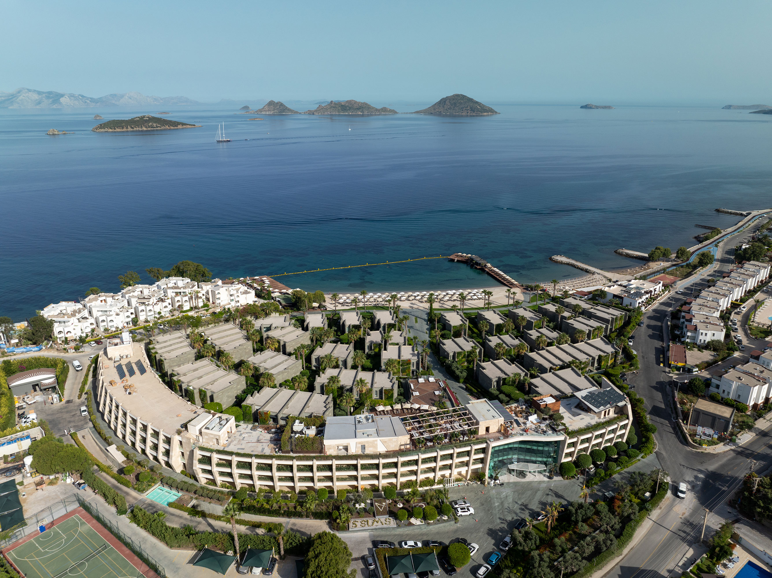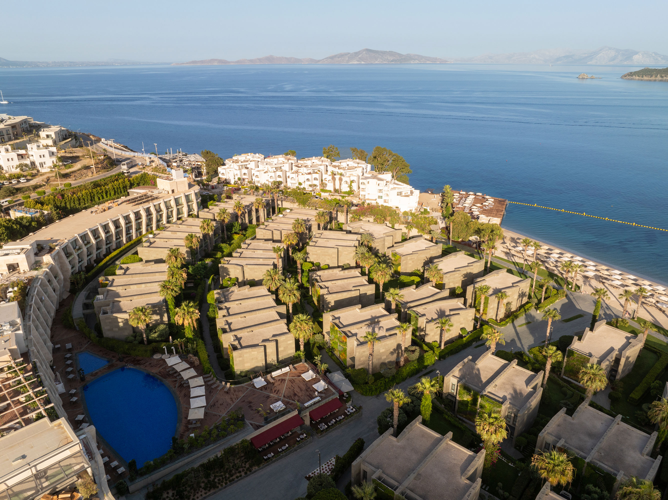 We are in the most beautiful location of Bodrum with its seafront location in Turgutreis, where you can watch the most beautiful sunset of the Bodrum peninsula, at the intersection of the Aegean and the Mediterranean. Our hotel, 22 kilometers from Bodrum city center, has 70 rooms and suites, each of which is at least 40 square meters.